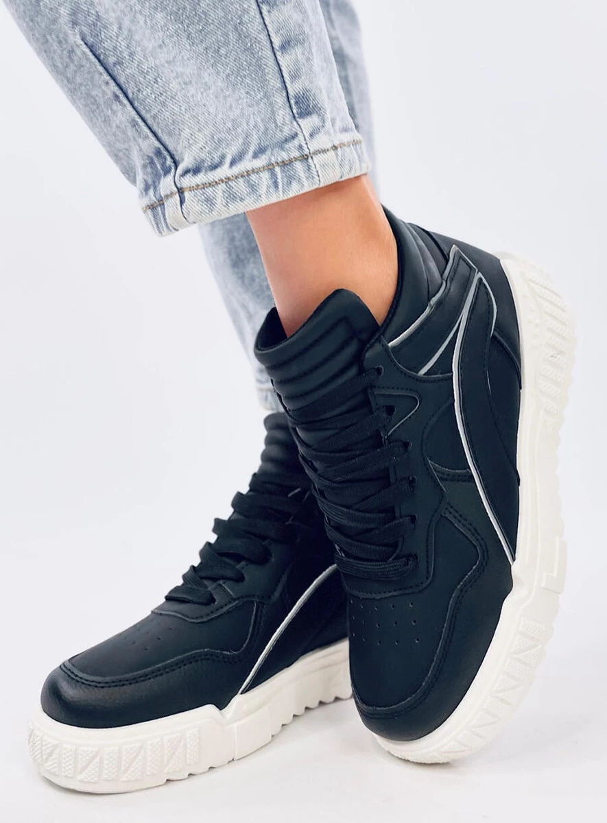 Sznurowane buty sportowe – sneakersy damskie za kostkę. Model wyróżnia się minimalistycznym fasonem, dzięki któremu te buty będą bazą dla wielu stylizacji w sportowym stylu. Nie dość, że świetnie wyglądają to jeszcze są mega wygodne! Wnętrze butów wyścielone jest tkaniną. Materiał zewnętrzny – skóra ekologiczna.