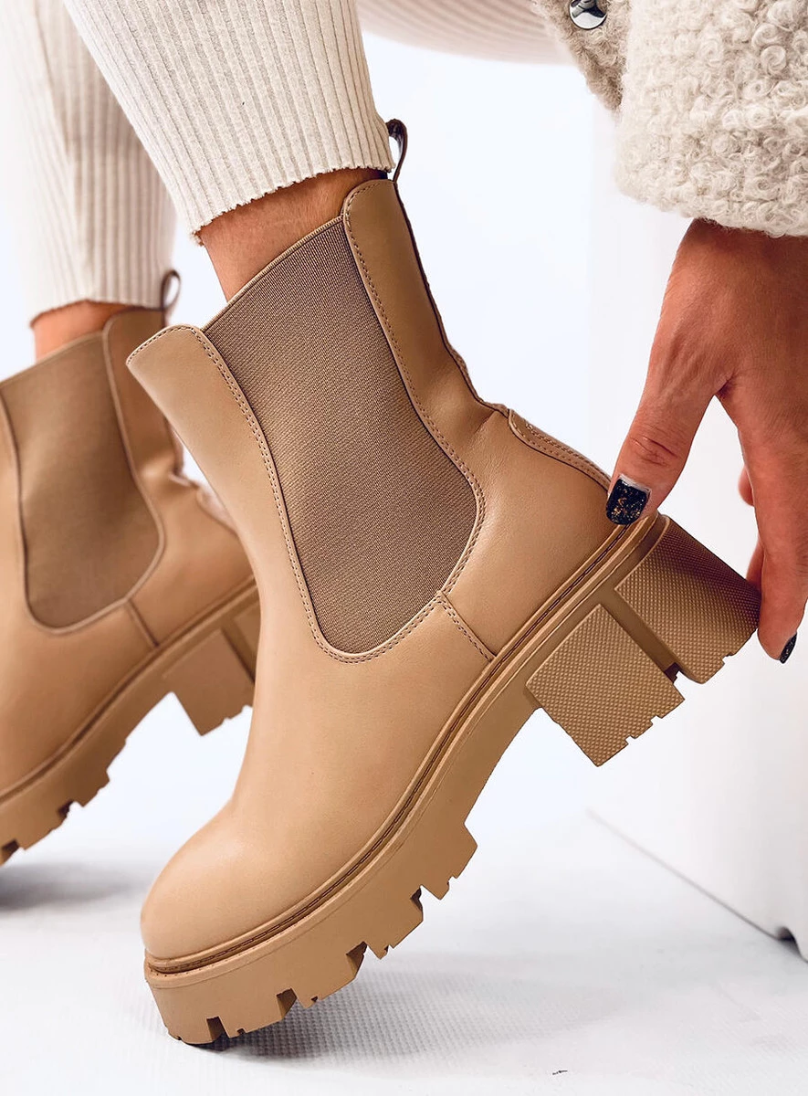 Licowe botki damskie – sztyblety z wysoką cholewką. Model ma klasyczny fason na najmodniejszej, wysokiej podeszwie – uwielbiamy takie rozwiązania! Elastyczne wstawki zapewniają komfortowe zakładanie. To idealne buty na co dzień! Wykonane są ze skóry ekologicznej, a wnętrze wyścielone jest delikatnym futerkiem.