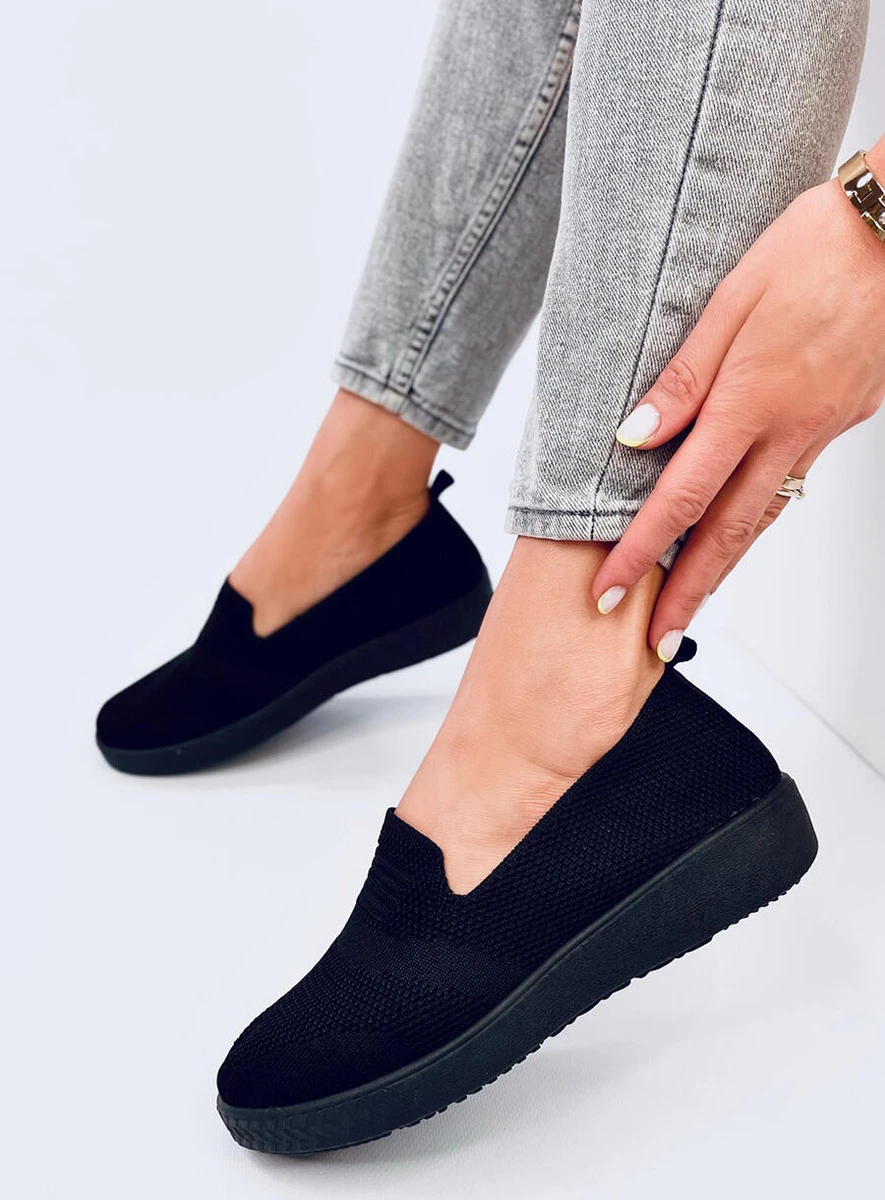 Tenisówki damskie typu slip-on na delikatnym podwyższeniu. Model wykonany jest z przewiewnej, skarpetkowej tkaniny o ażurowanym wzorze. Ponadto są lekkie i niesamowicie wygodne – przekonaj się o tym sama! Wkładka wewnętrzna – tkanina.