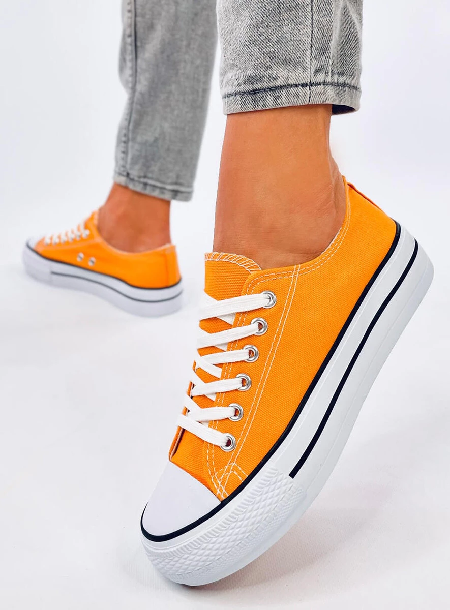 Klasyczne trampki damskie na wysokiej podeszwie. Ten ponadczasowy fason to wybór modny, sprawdzony i niezastąpiony! Trampki są też komfortowe w noszeniu – to idealne buty na co dzień : ) Materiał zewnętrzny + wewnętrzny – tkanina.