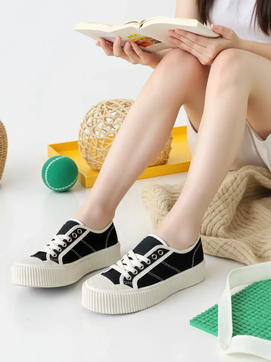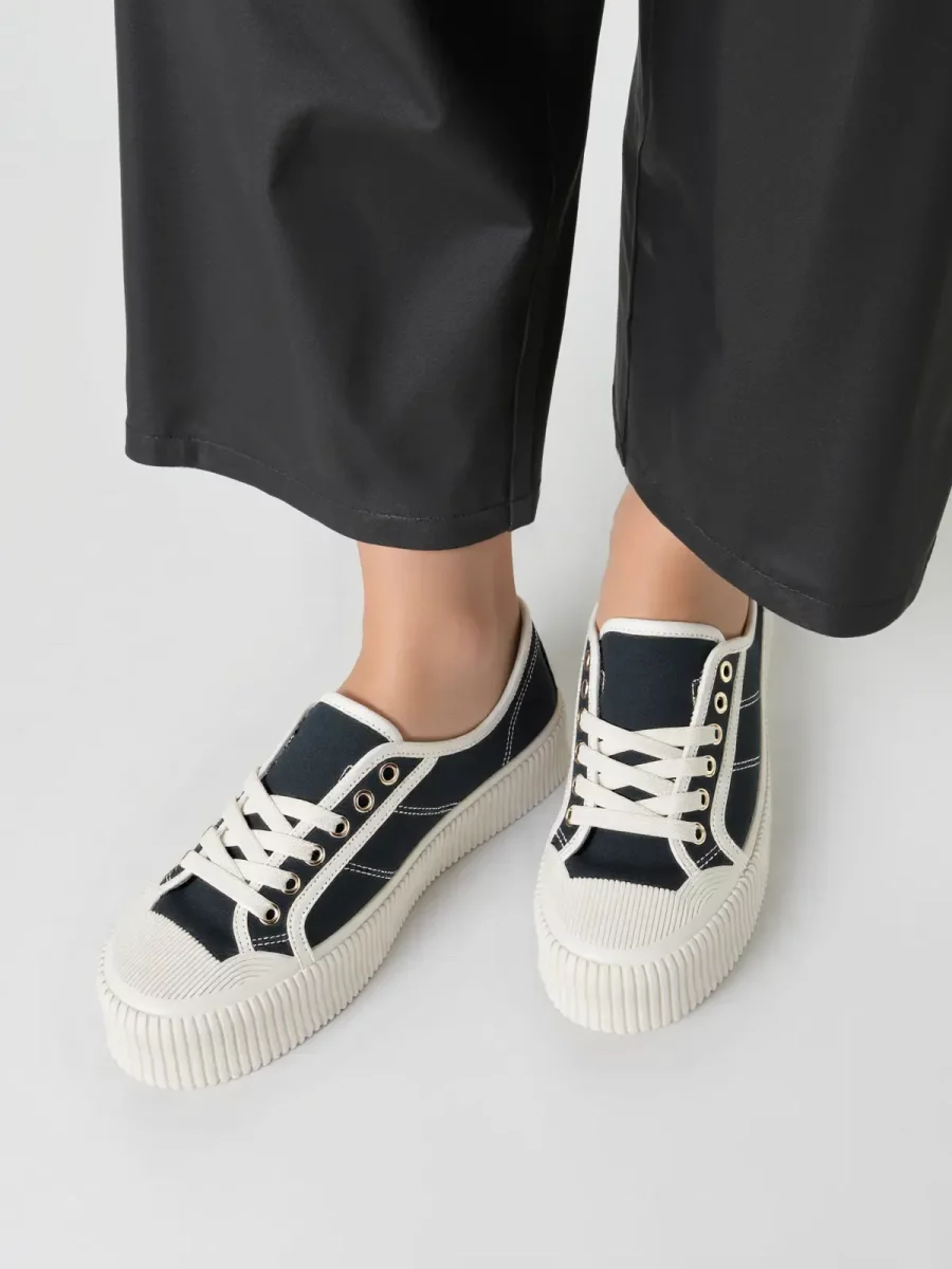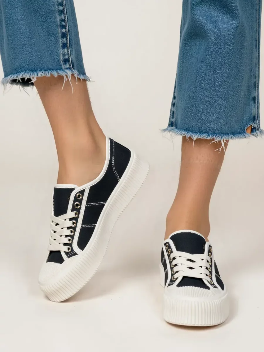 Trampki damskie na platformie. Model wyróżnia najmodniejsza wysoka podeszwa (4 cm), która wysmukli Twoją sylwetkę… Są mega wygodne, więc z pewnością będą Twoją ulubioną parą butów : ) Wnętrze wyścielone jest tkaniną. Materiał zewnętrzny – tkanina.