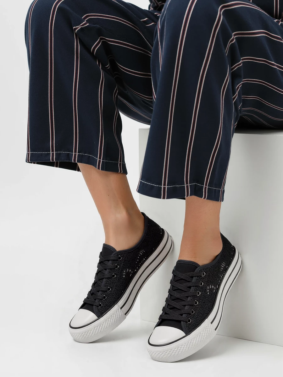 Wyjątkowe trampki Kaja Black łączą w sobie nowoczesny design i komfort. Dzięki koronkowej strukturze i czarnemu kolorowi świetnie sprawdzą się zarówno w codziennych stylizacjach, jak i podczas specjalnych okazji. Doskonałe dla osób ceniących sobie wygodę i modny wygląd.