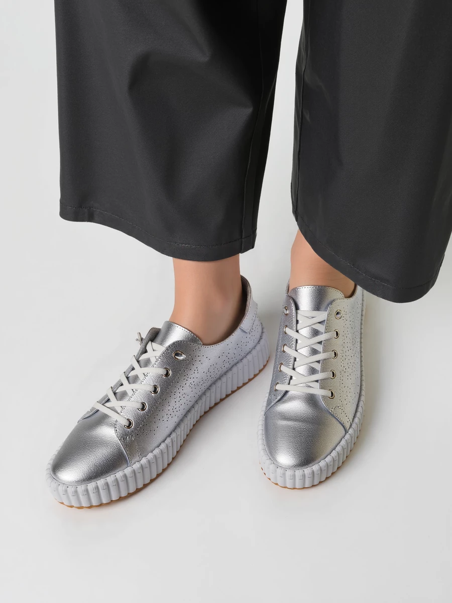 Odkryj wyjątkowe trampki Lśnienie Silver, które doskonale łączą styl i wygodę. Ich srebrny kolor sprawia, że idealnie nadają się na codzienne wyjścia i bardziej oficjalne okazje. Dzięki solidnej podeszwie i przewiewnym materiałom, zapewniają komfort przez cały dzień i są idealnym wyborem na każdą pogodę.