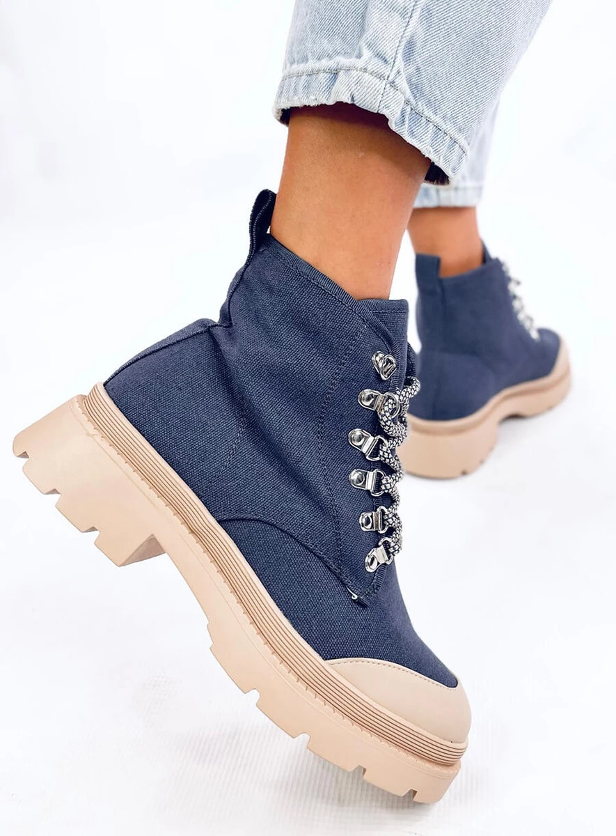 Trekkingowe trampki damskie za kostkę. Mają unikatowy fason na najmodniejszej, wysokiej podeszwie, która doda centymetrów : ) Koniecznie przygarnij je do swojej szafy, a staną się Twoją ulubioną parą butów! Materiał zewnętrzny + wewnętrzny – tkanina.